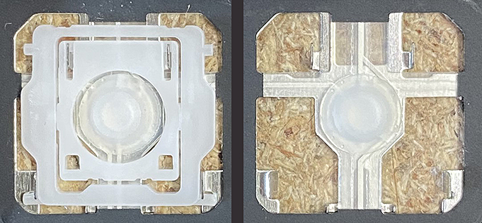 - Si le cône caoutchouc, situé sous la touche, a disparu ou est déchiré.